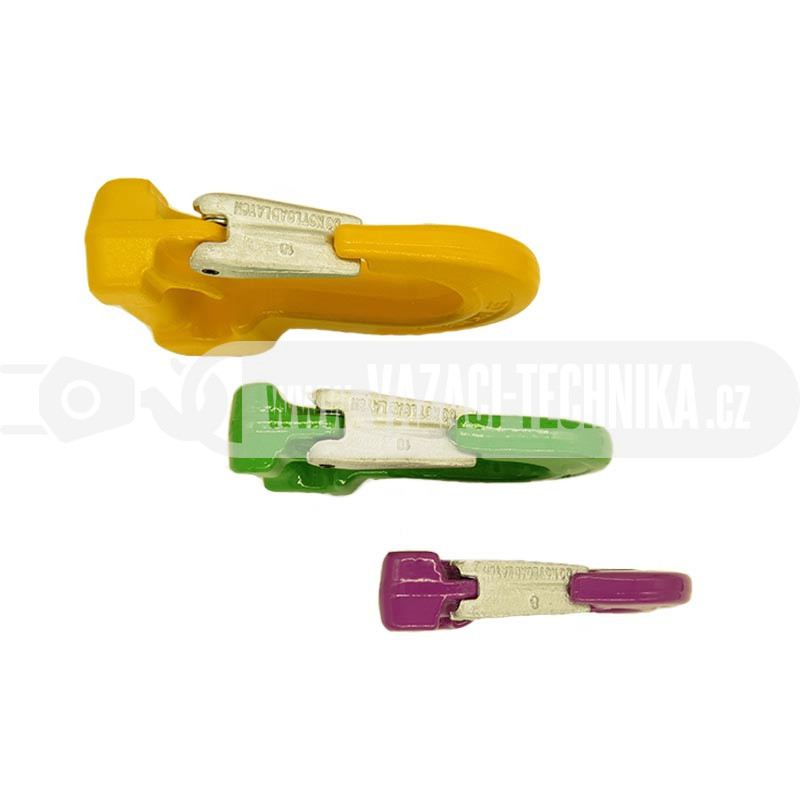 - farebne rozlíšené podľa normy (zhodné s textilnými slučkami a popruhmi)